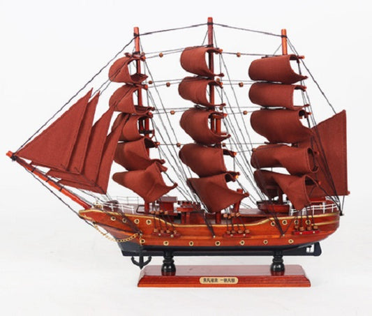 Red Sales Mediterranean Pirate Tollship Sailboat Wood Model Assembled