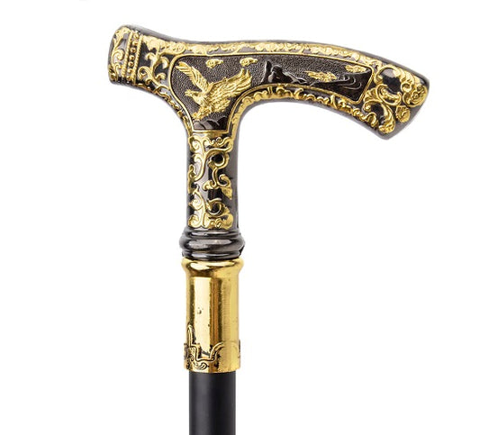 Golden Black Luxury Eagle Nest Handle Walking Cane Fashion Gentleman Walking Stick