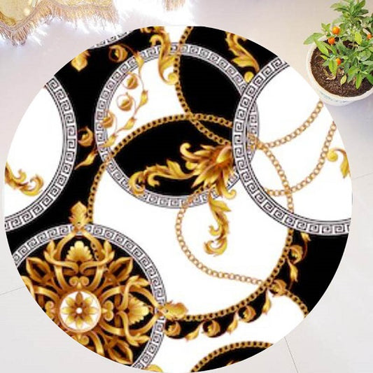 Versace Style Gold Luxury Round Carpets Anti-slip Soft Plush Rugs
