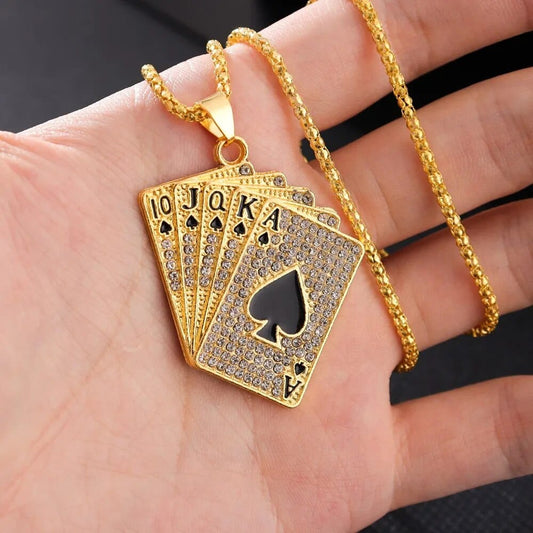 Playing Cards For Good Luck and Fortune For Players Gold Pendant Necklace with Zircon