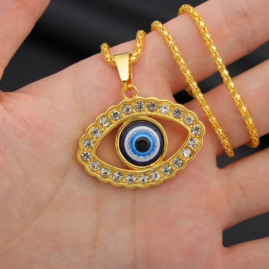 Kabbalah Talisman Eye of God Pendant Necklace with Zircon Amulet for Grat Triple Protection Against Evil