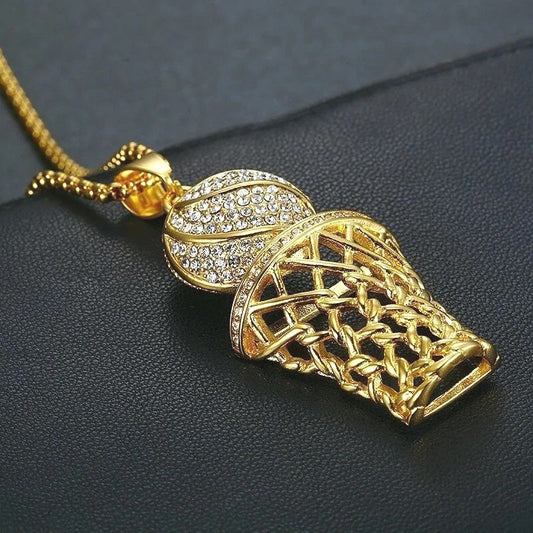 Basketball Box Pendant Necklace with Rhinestones For Good Fortune for Man and Woman