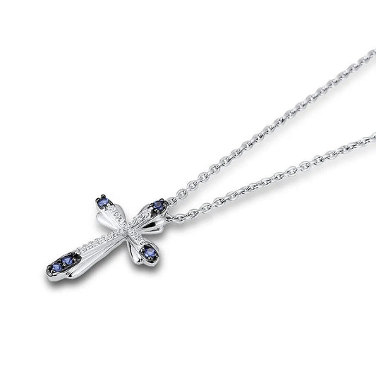 Designer Sapphire Crystal Cross Amulet Pendant Necklace for Woman