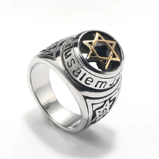 Jewish Ring with Star Of David Jerusalem and Rhinestones For Protection and Sucess Amulet for Men