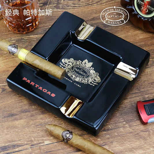 Luxury Style Hand Made Fine Ceramic Large Designer Cigars Partagas Black Ashtrays With Real Gold Leaf