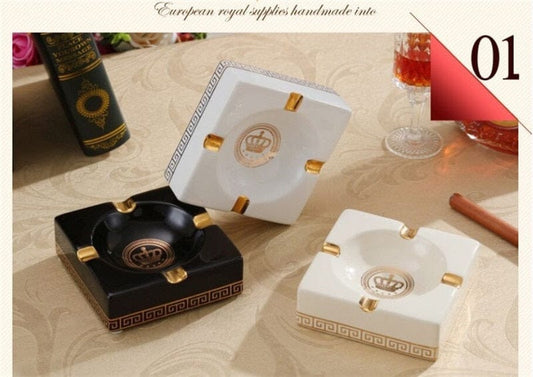 Versace Gold Crown Style Handmade Fine Ceramic Designer Ashtray With Real Gold Leaf