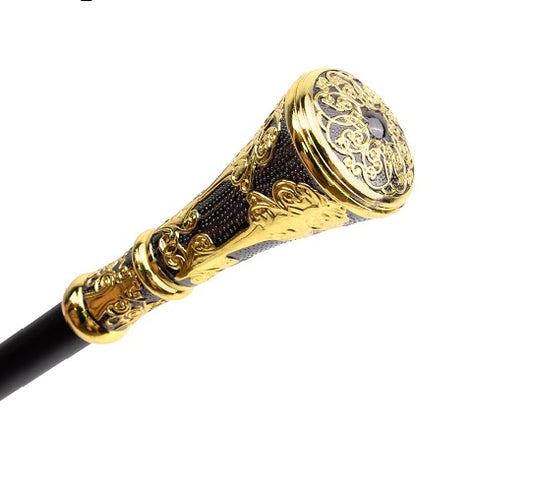 Golden Black Luxury Flower Round Handle Walking Cane Fashion Gentleman Walking Stick