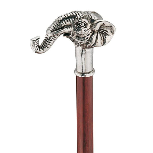 Italian Solid Hardwood Fortune Elephant Pewter Walking Stick Collectible Gift