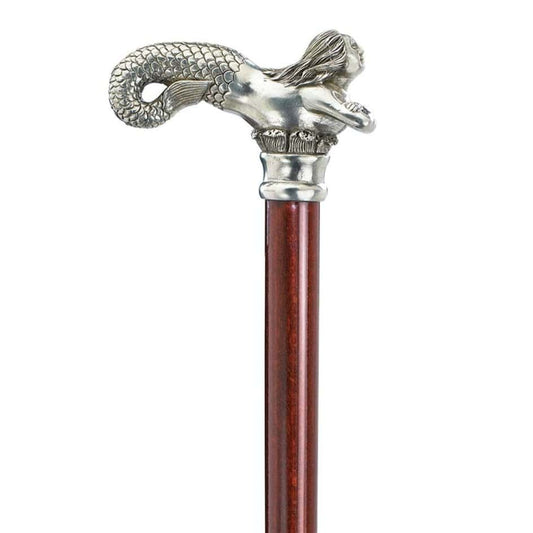 Italian Solid Hardwood Elegant Mermaid Pewter Walking Stick Collectible Gift