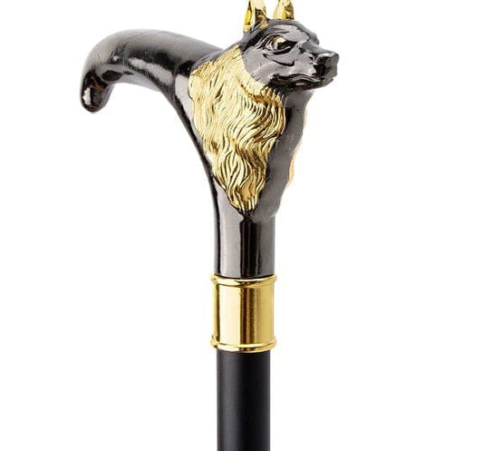 Collectible Wolf-Head With Gold Pattern Wallking Stick For Men And Women