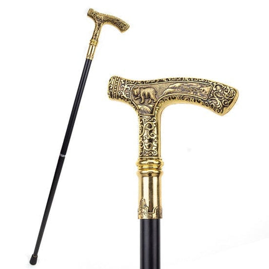 Gold Luxury Bear Handle Curve Line Type Walking Cane Fashion Gentleman Walking Stick