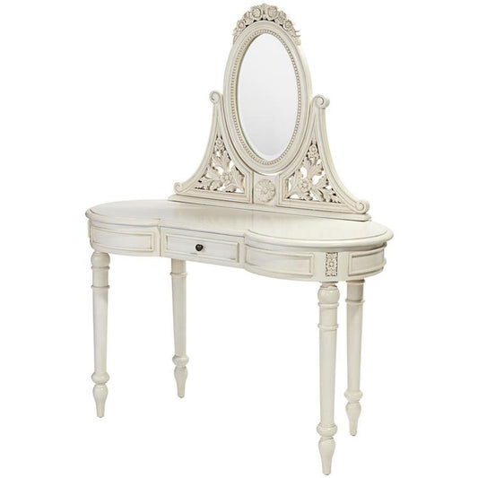 French Victorian Hand-Carved Solid Mahogany Antique Replica Bedroom Vanity White Dressing Table With Mirror