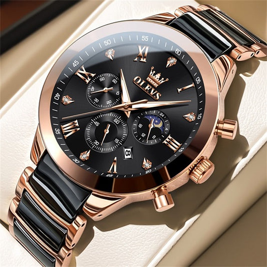 Elegant Romantic Quartz Waterproof Luminous Wristwatch with Moon Phases for Man by Olevs