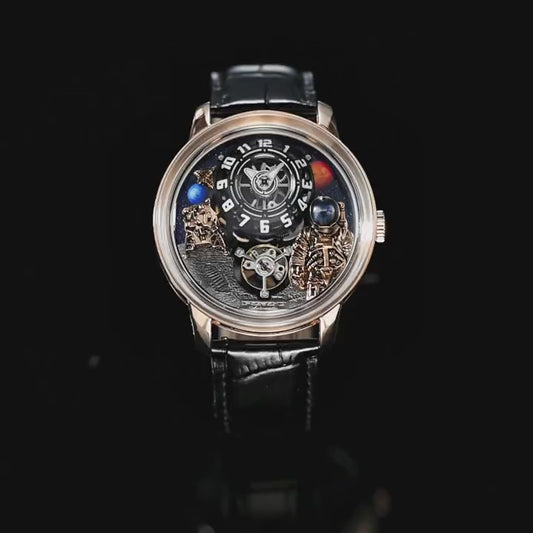 Space Series with Astronaut Footprint On The Moon Sapphire Glass Luminous Waterproof Shock Resistant Automatic Watch for Man By Pindu