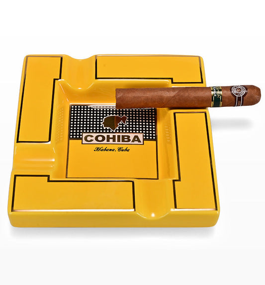 Cohiba Luxury Style Hand Made Gold Plated Fine Ceramic Large Designer Cigars Yellow Ashtrays