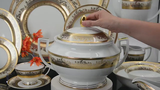 Ultimate Upscale Luxury English Royal Style Gold Plated Fine Porcelain Bone China 98 PCS Dinner Sets