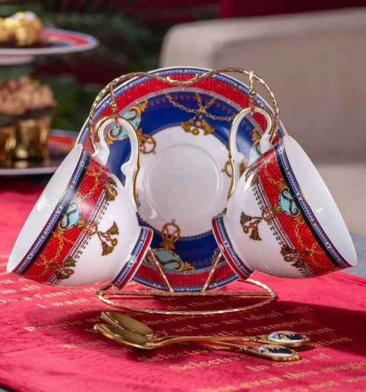 Elegant Luxury English Royal Court Style Hand Made Fine Porcelain Bone China Gold Plated Coffee and Tea Set 12 Pices