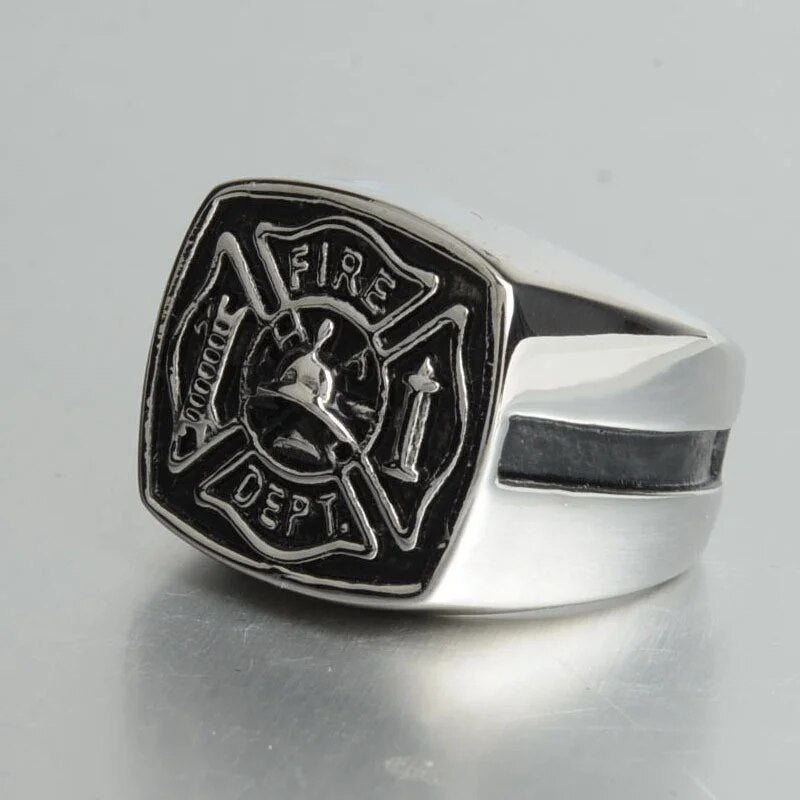 Expertly crafted with a silver plated finish, this American Firefighter Men's Ring is a must-have for any proud firefighter. Its intricate design showcases your dedication to service, while the durable construction ensures long-lasting wear. Show your support for the brave men and women who protect and serve with this stylish and meaningful ring.