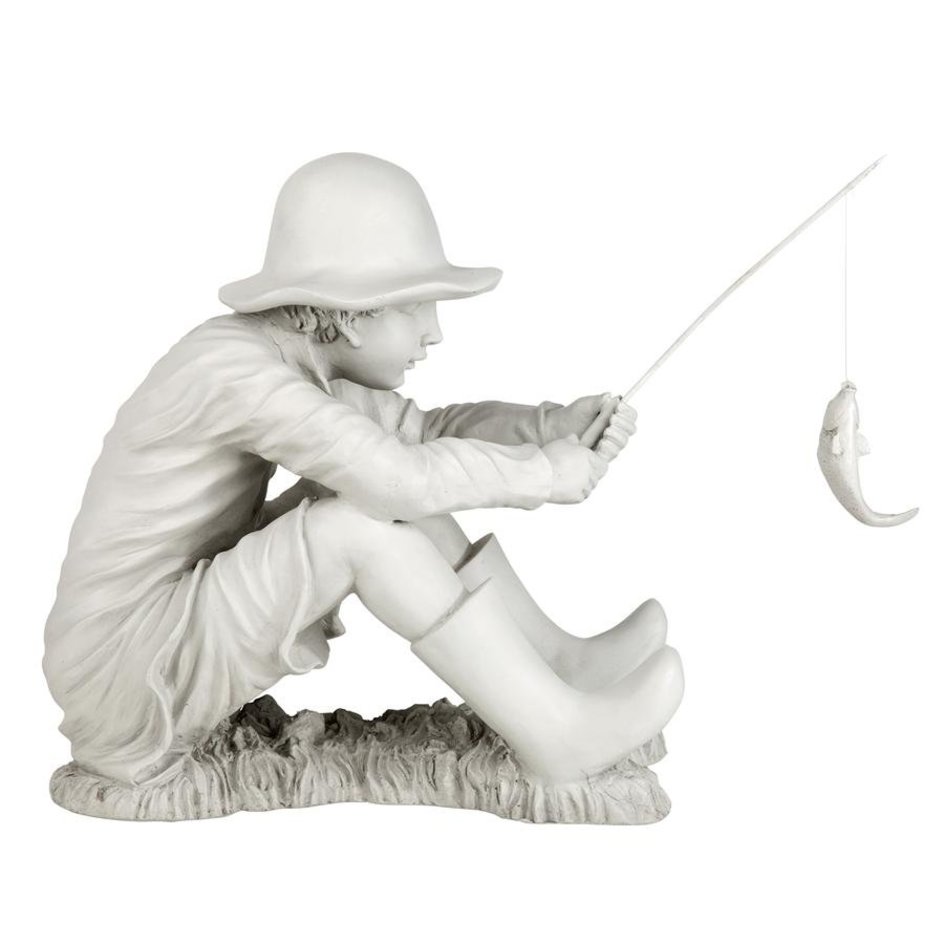 With all the tug-at-the heartstrings nostalgia of a Mark Twain tale, this perfect-for-the-pond fisher boy statue is the favorite of anglers and those who love them. This soothing garden statue of a simpler time casts a boy, a fishing pole and his catch as it spins a yarn of the fish that didn't get away. Our exclusive is cast in quality designer resin with a faux antique stone finish. The pole is removable.