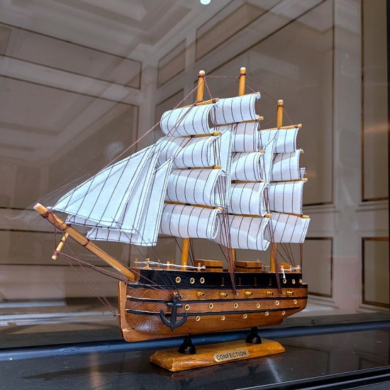 Sail away with this handcrafted Blue Dream Limited Edition Full Crooked Sails Tall Ship Wood Model Sailboat! Made from high-quality materials, this sailboat boasts incredible attention to detail, perfect for any nautical enthusiast. Display it as a beautiful collector's item or take it for a ride and feel the wind in your hair.
