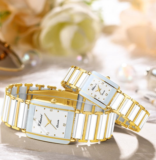 This elegant His and Hers gift set from Ghenxi offers expertly crafted designer watches for men and women. Both timepieces feature reliable water resistance, combining practicality with refined aesthetics. Perfect for couples seeking a sophisticated, coordinated accessory, these watches blend romantic design with durable construction, making them ideal for everyday wear or special occasions.