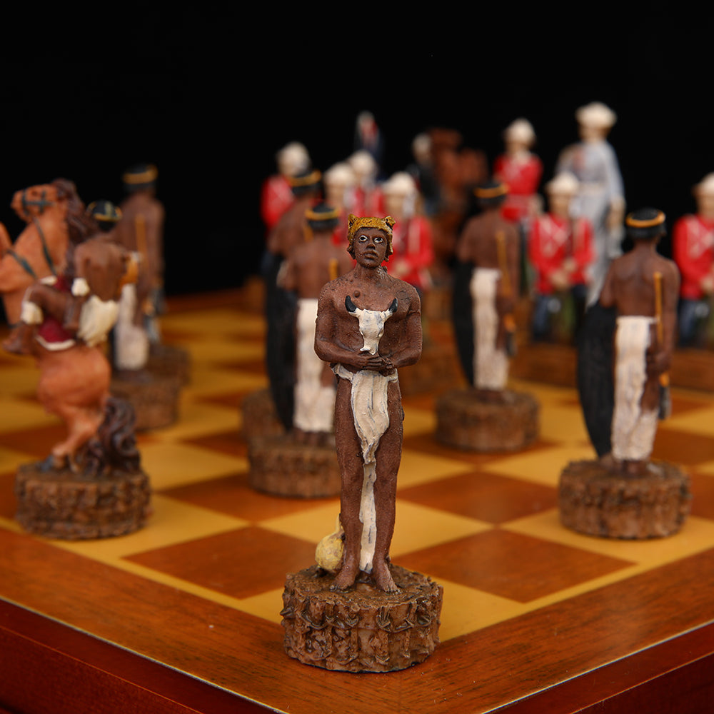Enhance your strategic thinking with our Collctible British with Zulu War Chess Board Game. Immerse yourself in the fascinating history of the Anglo-Zulu War while practicing your chess skills. Choose from a variety of chessboards to customize your gaming experience. Perfect for history buffs and chess enthusiasts alike.