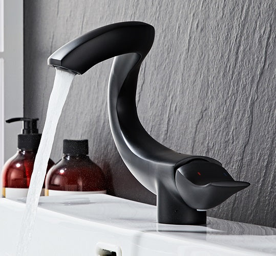 Contemporary Solid Brass Dinosaur Shape Bathroom Basin Single Hole Faucet Deck Mounted