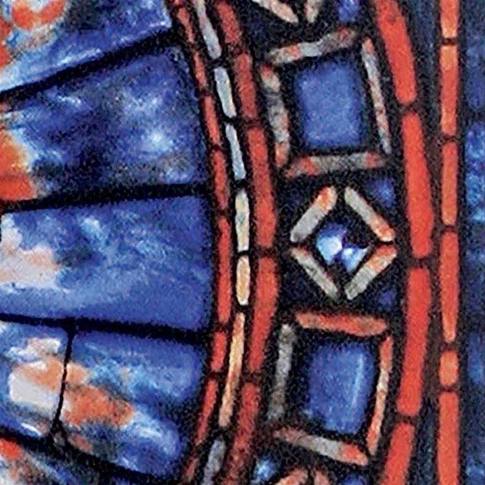 Doves represent many things: hope, salvation, love, and devotion; Tiffany's illustrious round stained glass art window depicts a dove ascending among the folds of brilliant sunlight in a bright cobalt blue sky surrounded by a brilliant jeweled background. Tiffany made it his creative life-long goal a "pursuit of beauty" as he labored to improve the stained glass process. Art glass, also called stained glass, is created by a unique technique of fusing hand-rolled architectural glass with unique transparent enamels, then kiln fired at temperatures above 1100 degrees Fahrenheit so the colors actually becomes part of the glass. The shades and hues will stay bright and glowing with radiant color and provide a stunning view from either side. Our art glass window is framed in zinc with a hanging chain for window display and a tabletop easel stand to enjoy this treasured piece in any room.