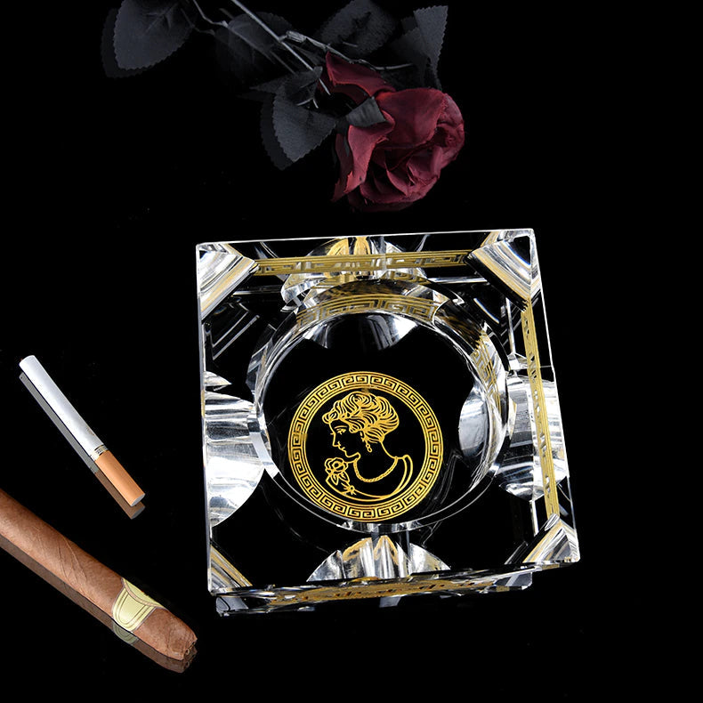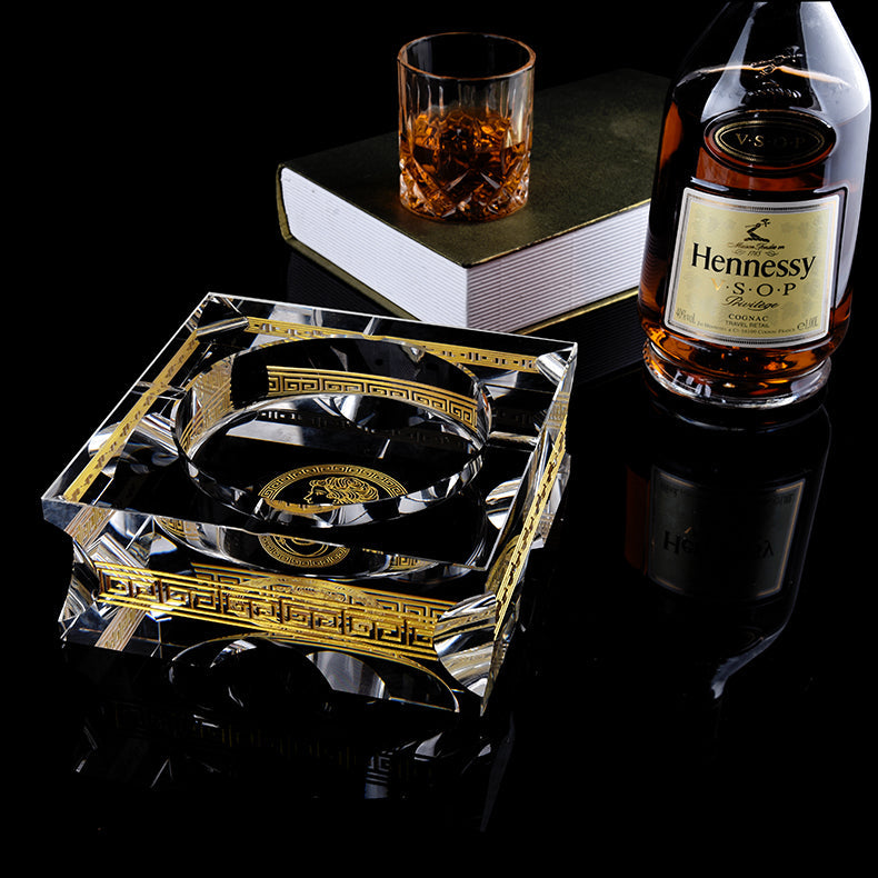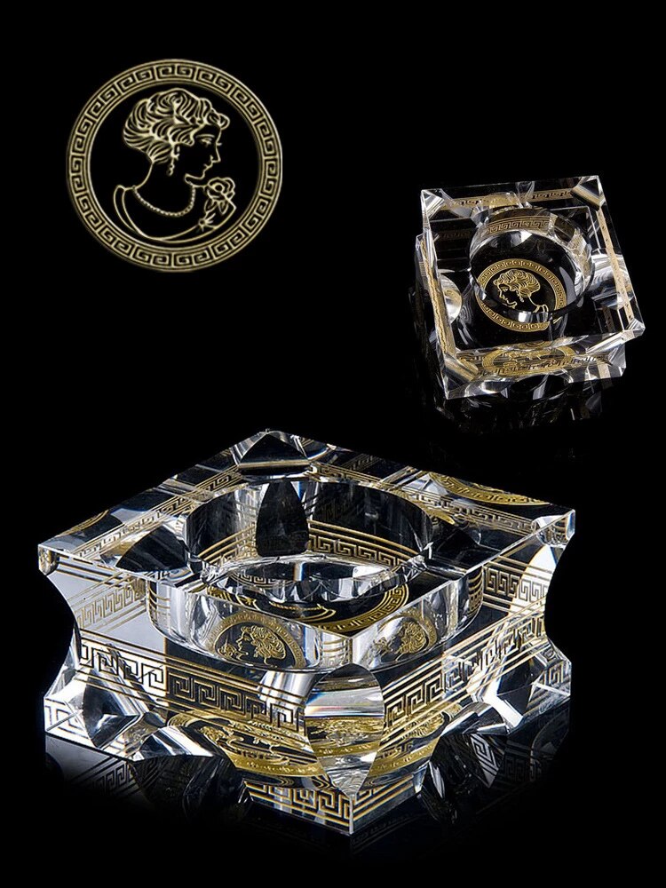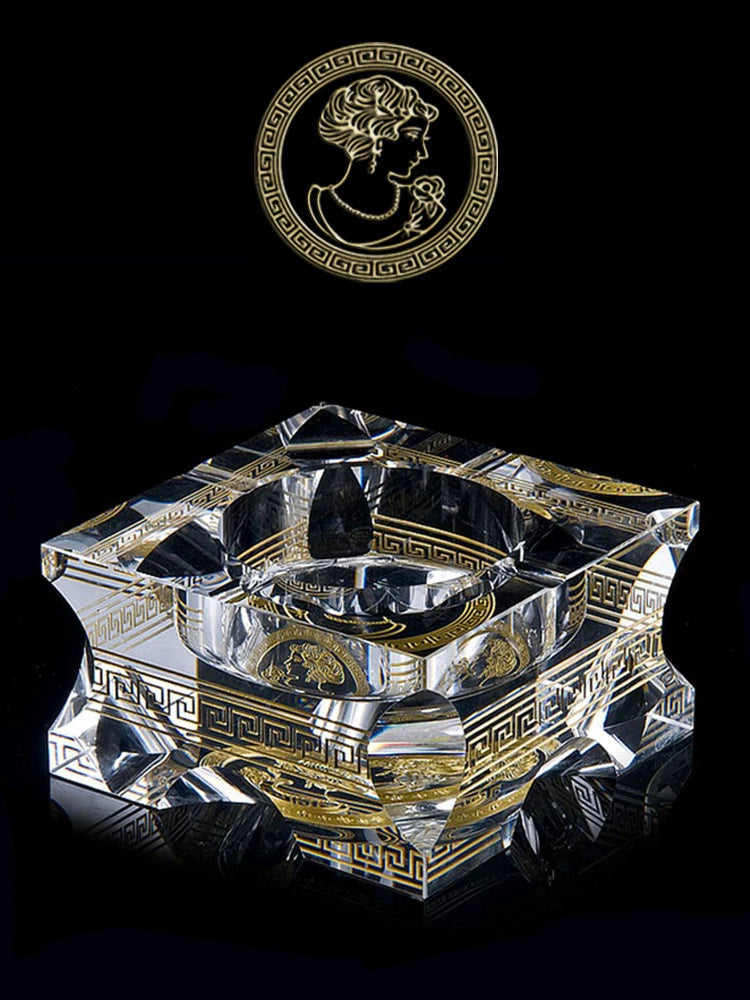 French Royal Style Hand Made Fine Led Free Cristal with Real Gold leaf Designer Ashtray