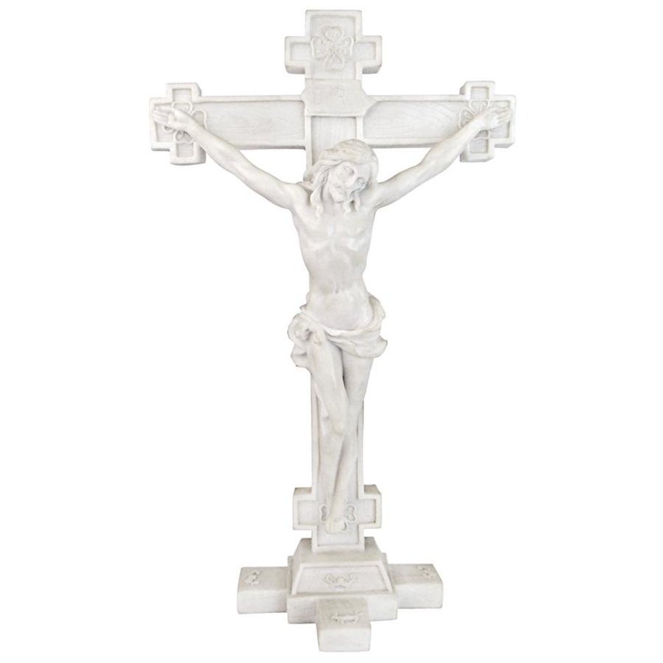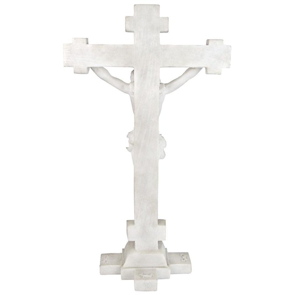 Never forgetting the ultimate sacrifice of Christ, Christians throughout the ages have embraced the cross as a tribute to their Lord. Sculpted with a sign declaring INRI, this crucifix depicts details from the wood-grained cross to the body of Jesus at his darkest hour preceding the ultimate victory of his ascension. This Christian icon showcases its fine sculpt cast in fine-quality, bonded marble resin as an instant destination for prayer and reflection.