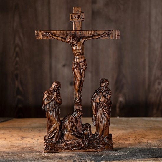 Crucifix INRI Christian Catholic Jesus Crucifixion Scene Wood Hand Carved Statue