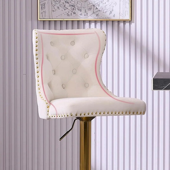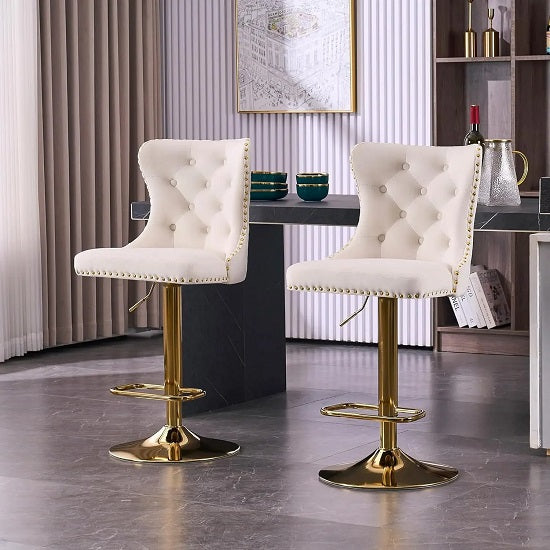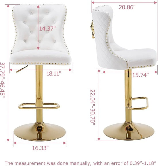- ๐๐ฑ๐ท๐๐๐๐ฎ๐ฏ๐น๐ฒ ๐๐ฎ๐ฟ ๐ฆ๐๐ผ๐ผ๐น: This bar stool with tufted back has a golden base and pedals,very sturdy and durable, it is the perfect seat choice for your home bar or counter.Weight capacity 300 lbs. By raising the lever under the seat you can easily change the seat height from 37.79" to 46.45".