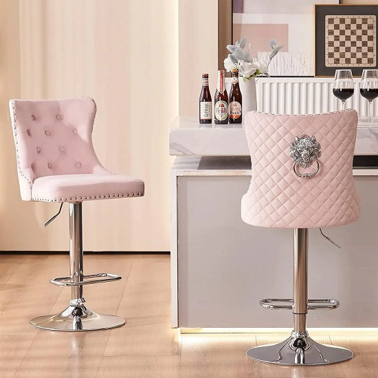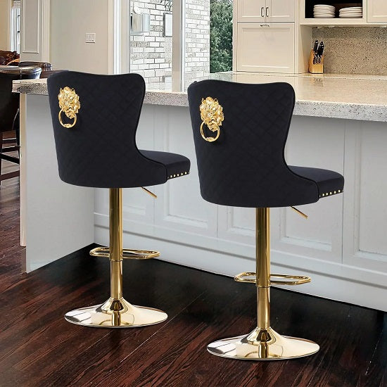 Designer luxury Velvet Upholstered Bar Chairs With a Lion's Head Pull Ring Set Of Two