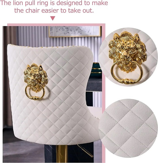 Indulge in designer luxury with our Velvet Upholstered Bar Chairs, featuring a set of two elegantly crafted chairs with a Lion's Head Pull Ring. Experience comfort and style with plush velvet upholstery, while adding a touch of sophistication to your bar or dining area.