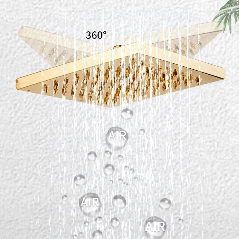 Squere Rainfall Stainless Steel Shower Head with LED,