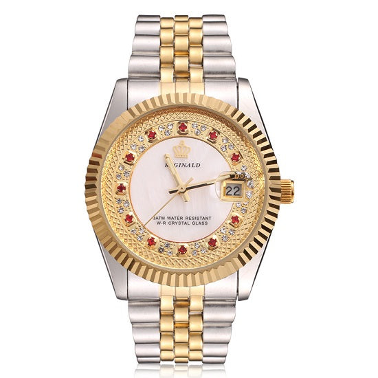Elegant Luxury Anti Fog Quartz Chronograph Gold Fluted Bezel Pearl Diamond Dial Waterproof with Day Display Watches for Man