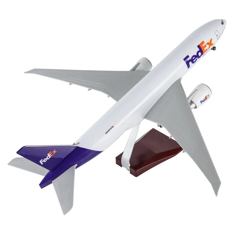 This model aircraft, featuring a FedEx Boeing 777 B777 Cargo Airlines design, includes functioning landing gears for a more realistic experience. Perfect for aviation enthusiasts or display in an office setting. Accurate and precise, it is a great addition to any collection.