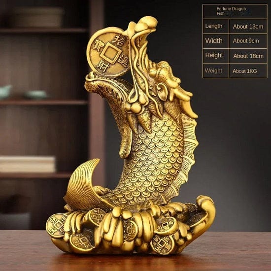 Feng Shui Golden Copper Brass Head Fish Sculptures For Welth,Sucess and Prosperity
