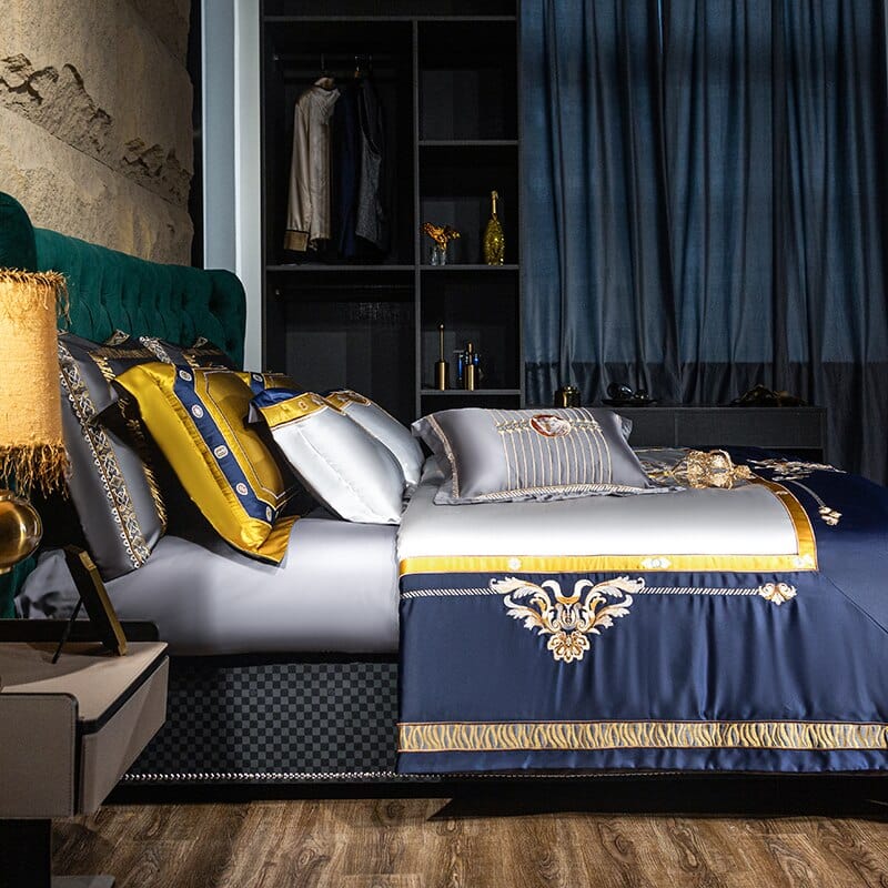Finest Ultra Luxury Royal Blue Style Luxury Duvet Set Egyptian Cotton With Golden Embroidery