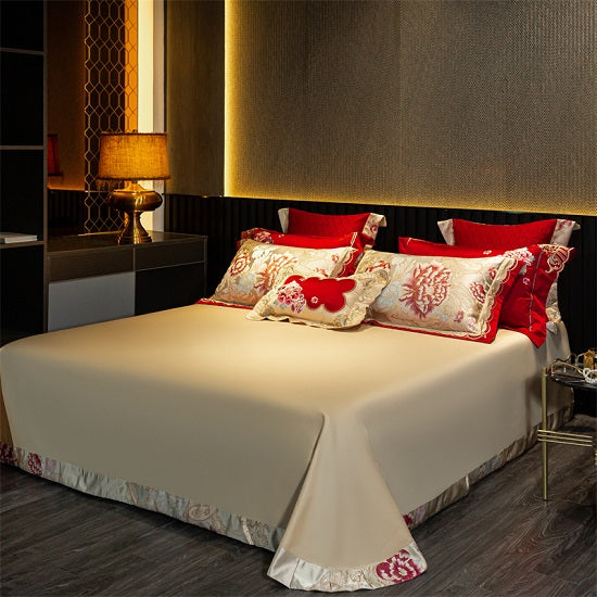 Gucci Style Luxury Embroidery Satin Jacquard Egyptian Cotton 4_6_10 Pcs Bedding Set Duvet Cover with Pillowcases
