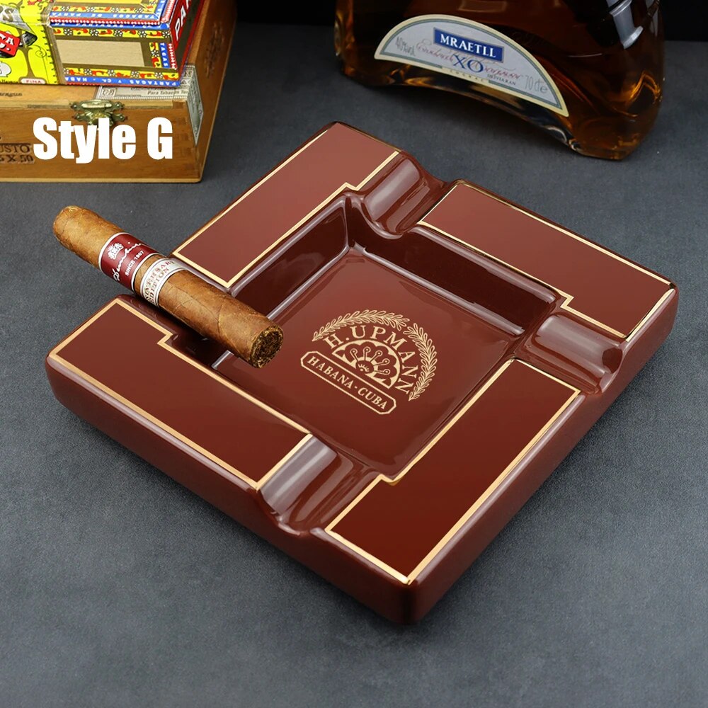 Hand Made H. Upanmn Habana Cuba Fine Ceramic Large Gold Plated Cigars Ashtrays