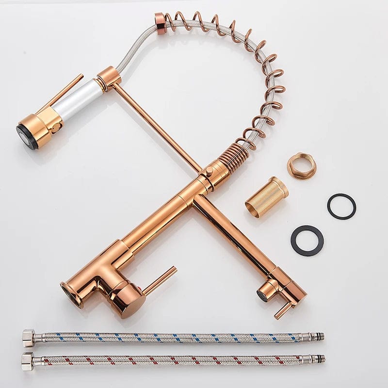 Spring Pull Down Kitchen Sink Faucet Single Handle Hot & Cold Water Mixer Crane Tap with Dual Spout Deck Mounted