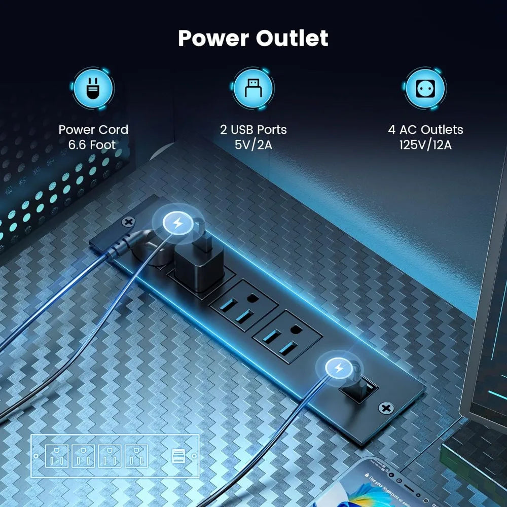- DOMICON Gaming L-shaped table is equipped with 4 AC power outlets + 2 USB charging ports, bringing great convenience to users for gaming or home office. Easily charge your PC, PS4, smartphone, Bluetooth, power bank or gaming device. Rated power: 1500W; AC power outlet: 120V/12A; USB port: 5V 2.2A
