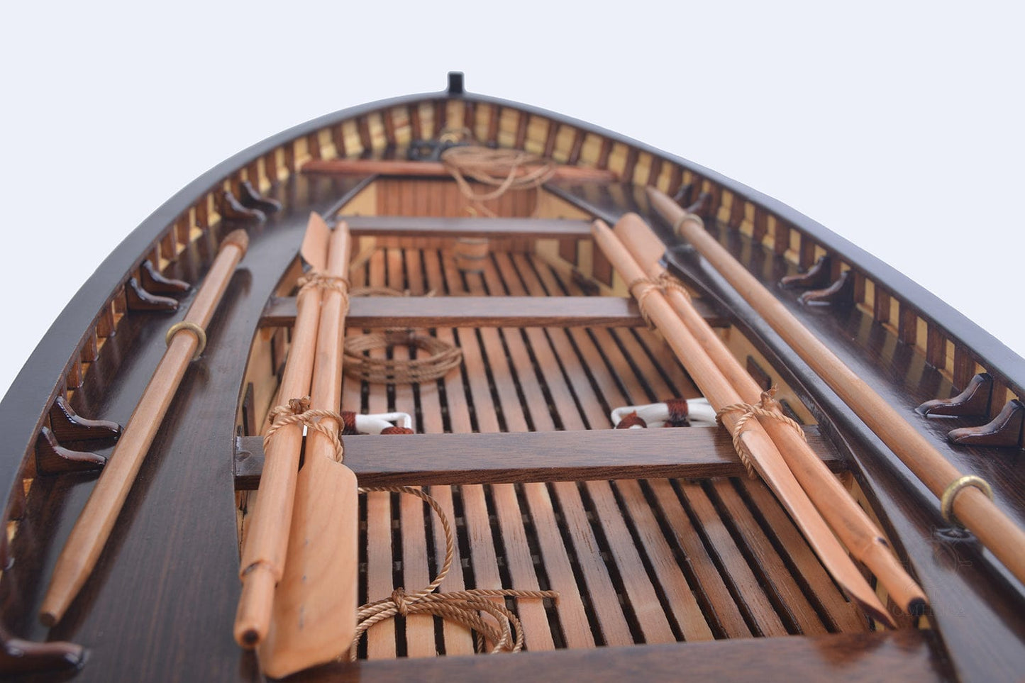 The RMS Titanic’s lifeboat model will surely bring back the memory of the most tragic sea disasters in modern history. Lifeboat 7 was a wooden starboard lifeboat and the first one to be lowered from the sinking Titanic. Although there was a capacity of 65 people, it left with only 28 people on board, thus with 37 empty seats. The reason why was that many women and children were reluctant to enter a small wooden lifeboat and preferred to stay on the massive ’unsinkable’, but sinking, Titanic.