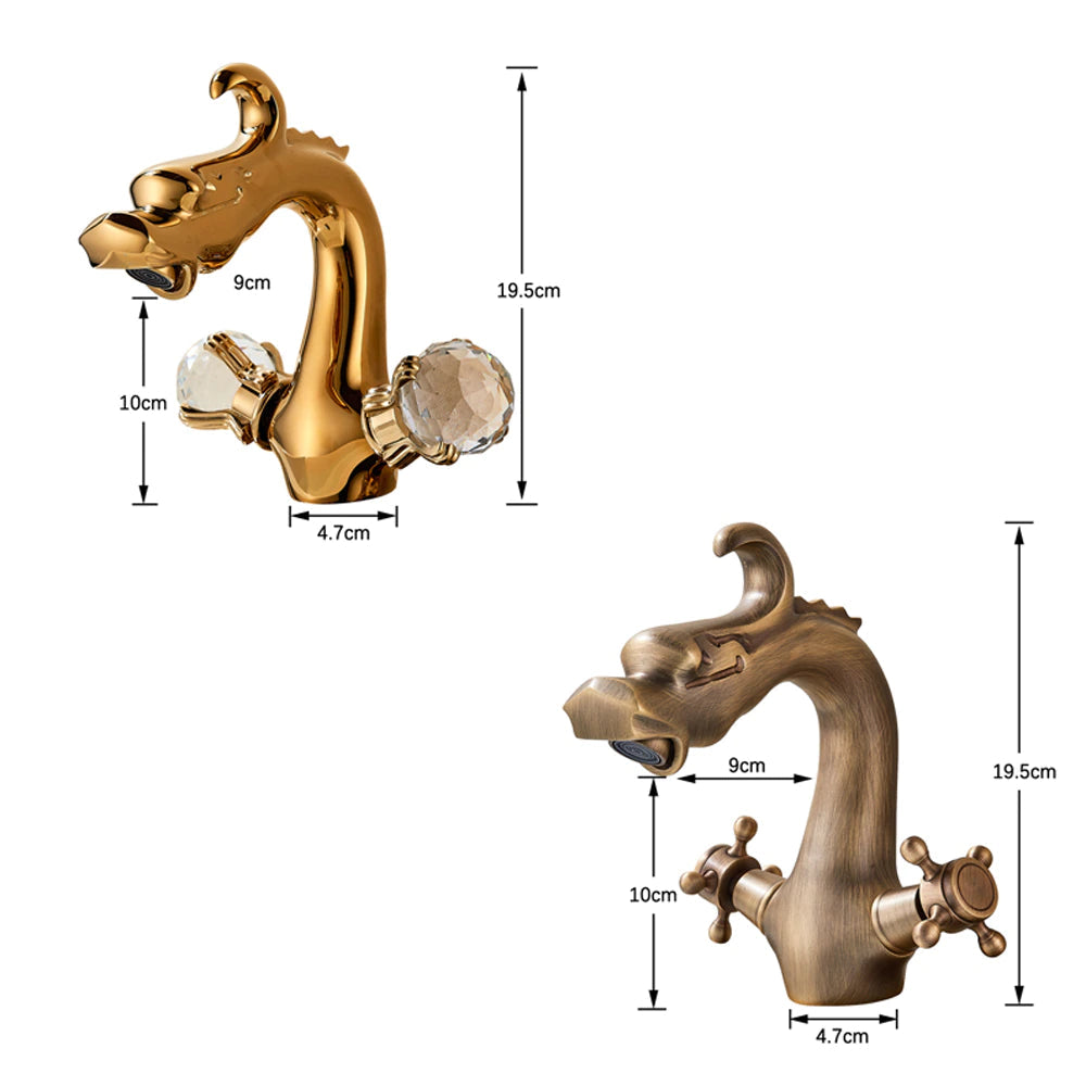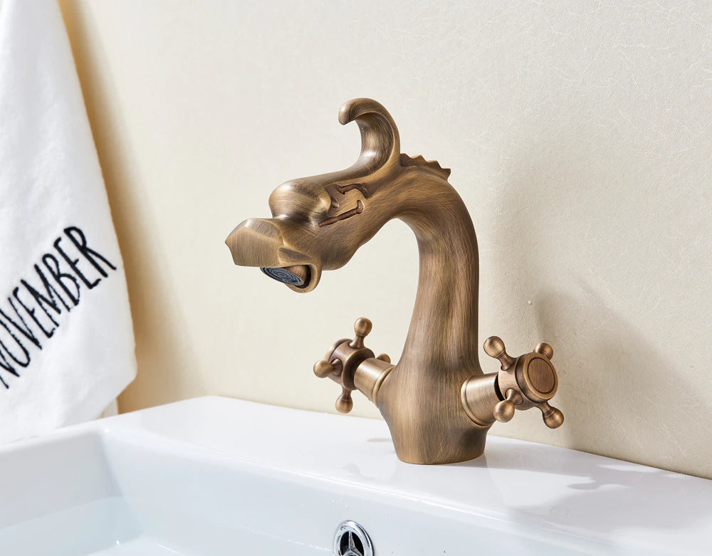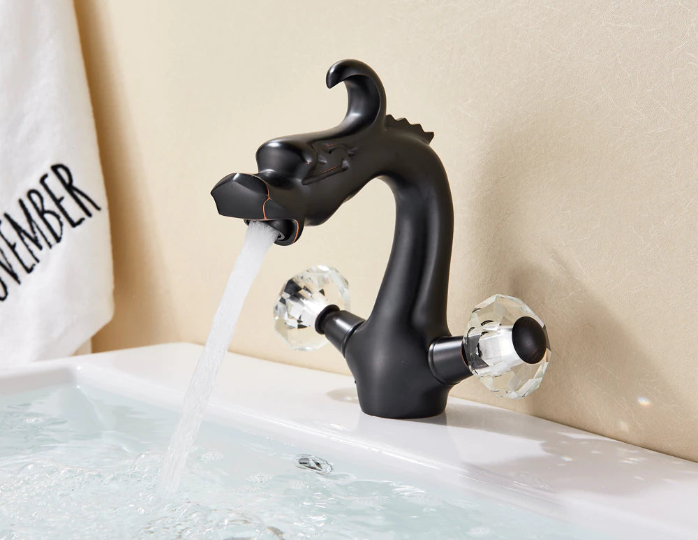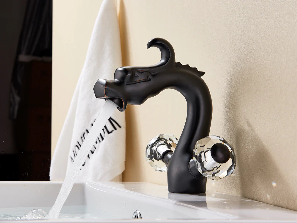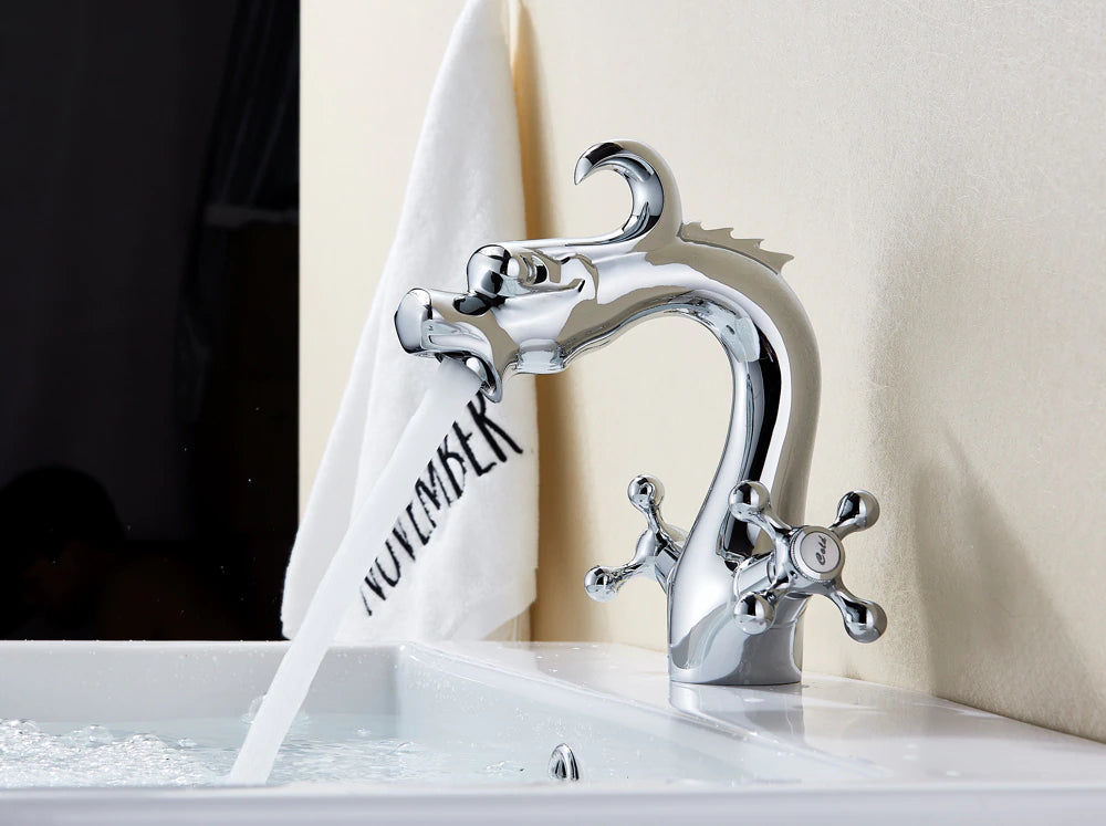Luxury Contemporary Bathroom Dragon Basin Solid Brass Faucet Deck Mounted.