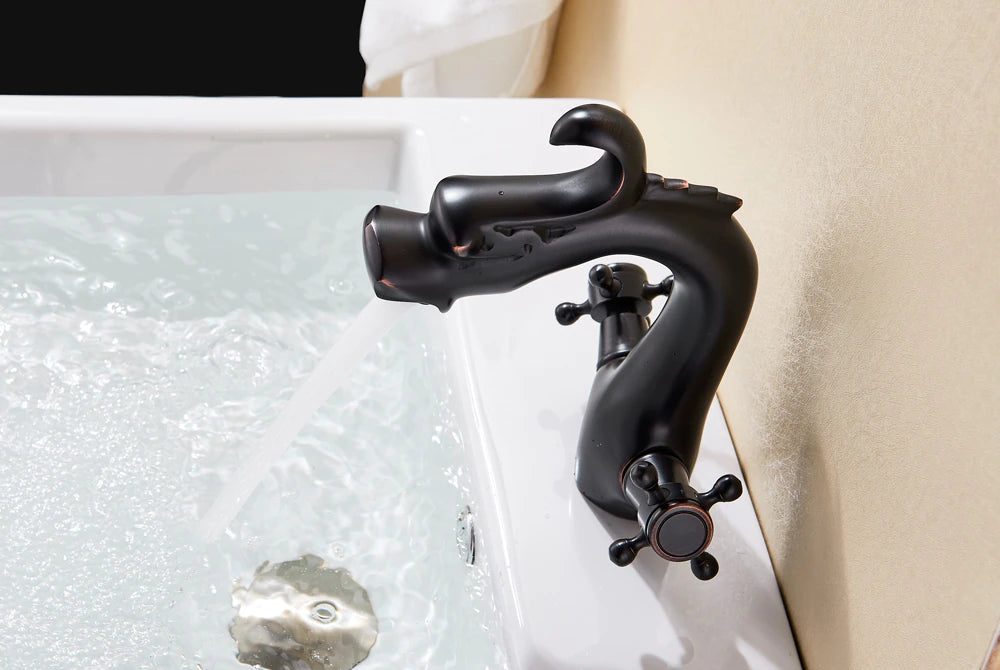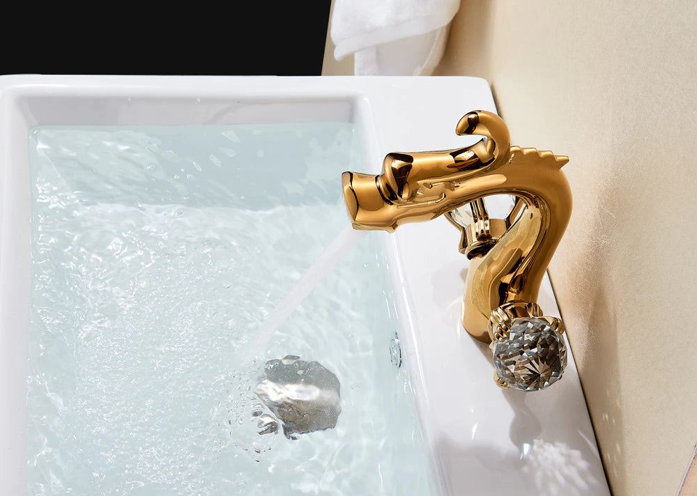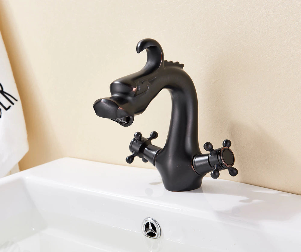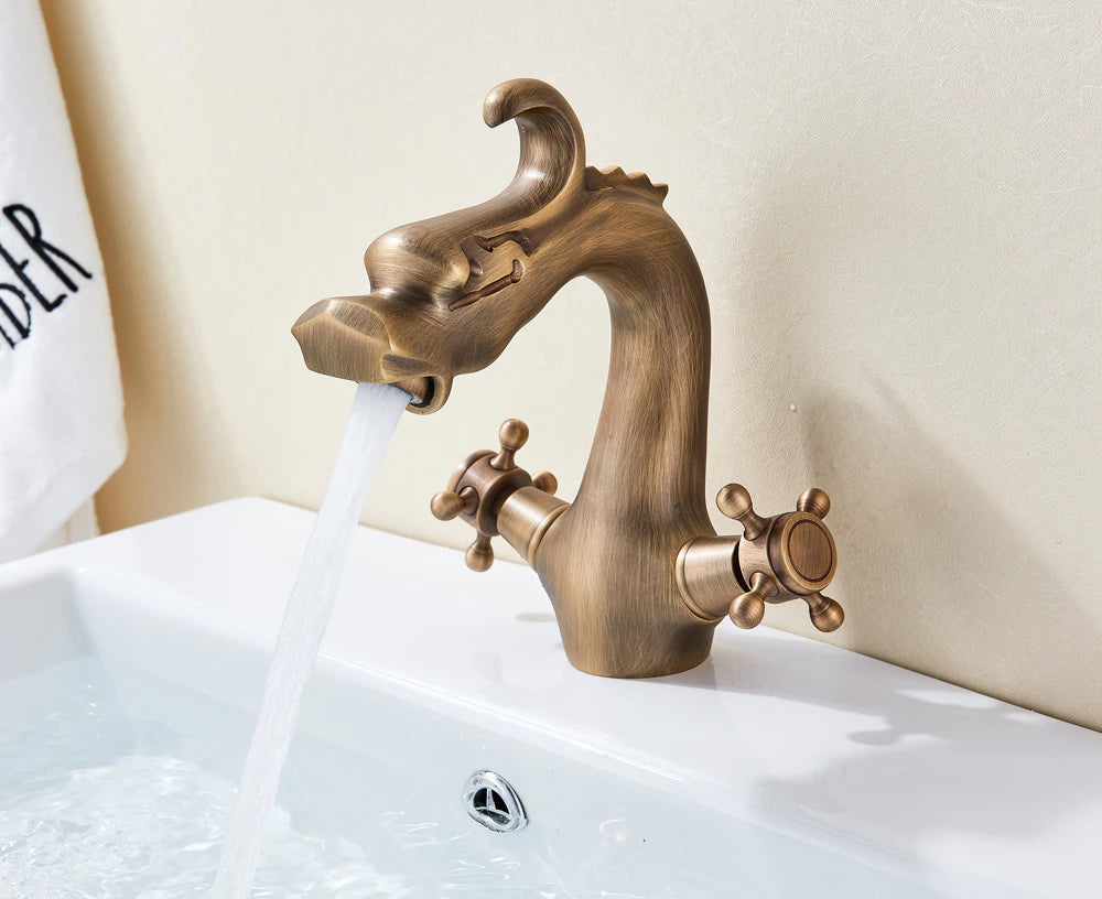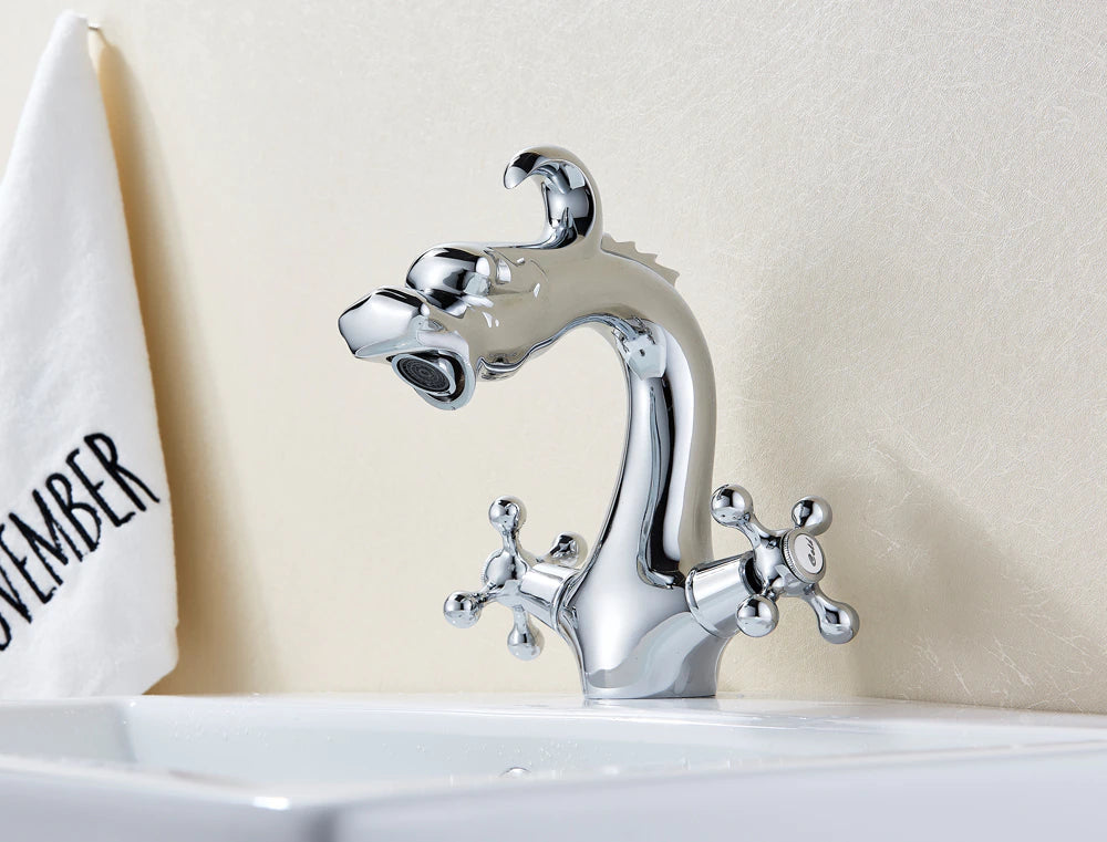 Luxury Contemporary Bathroom Dragon Basin Solid Brass Faucet Deck Mounted.