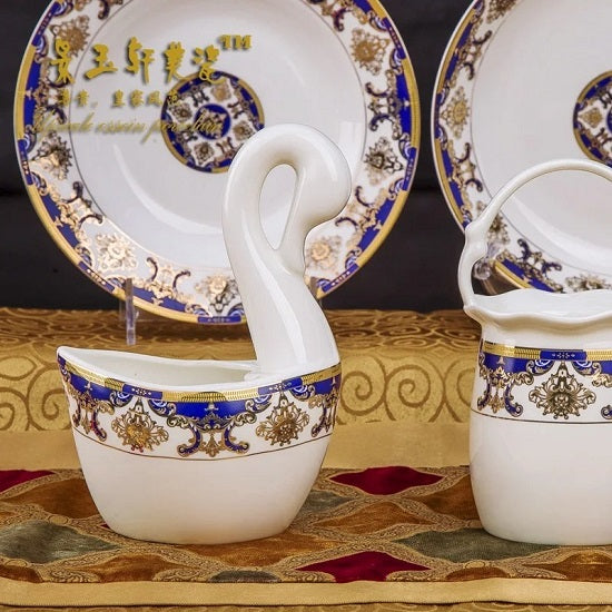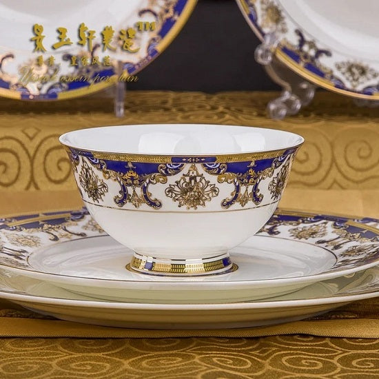 Luxury Guci Style Gold Plated Fine Porcelain Bone China 60 pies Dinner Sets