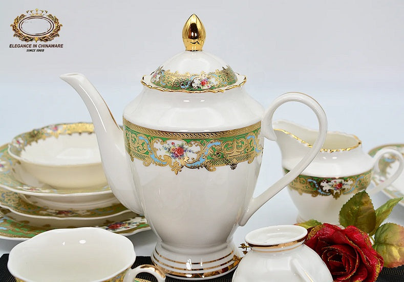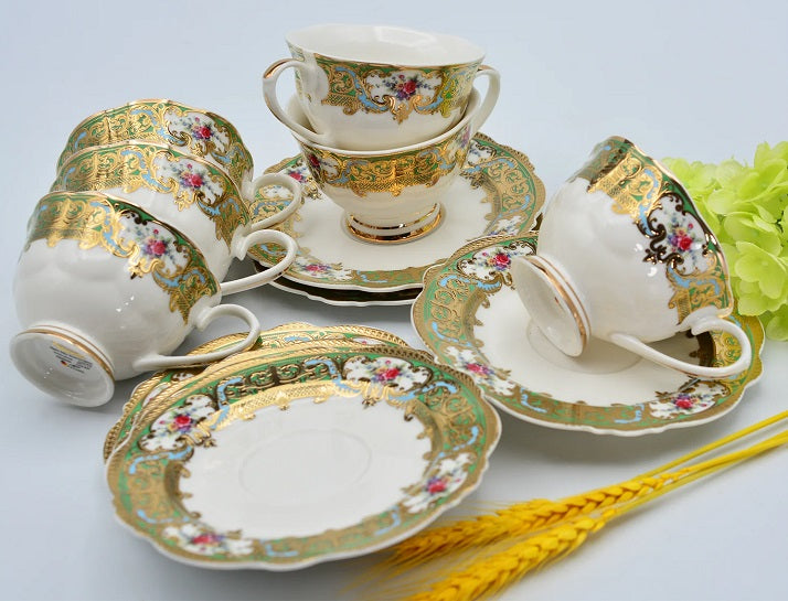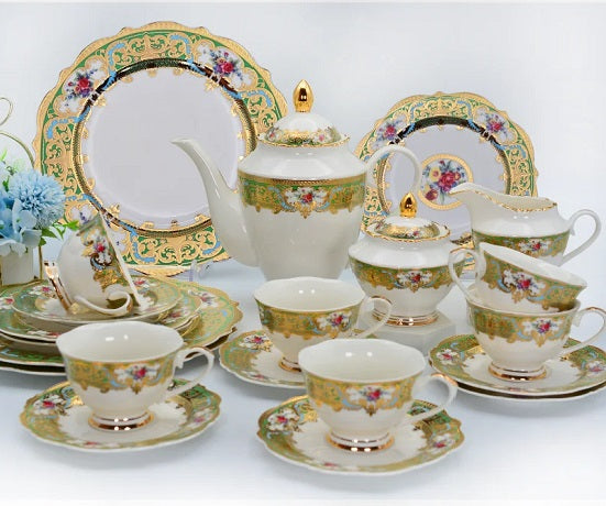 Luxury Royal Flowers Imperial Art Design 24 K Gold Plated Fine Porcelain Bone China 24 Pies Cofee Tea Sets