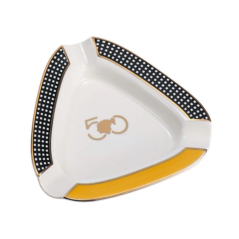 Hand Made Fine Ceramic Triangle Sigar and Cigarette Habanos S.A Yellow Ashtrays Exlusive Design by Nelson Alfonso