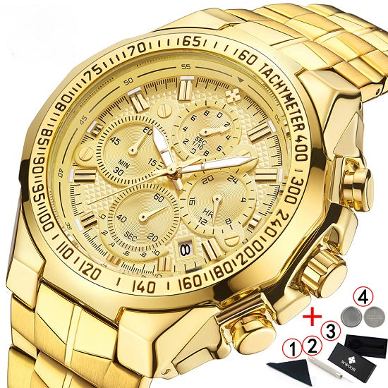 Luxury Timepic Multi Function Tachometer Chronograph Quartz 30 Meter Water Resistant Watch For Man